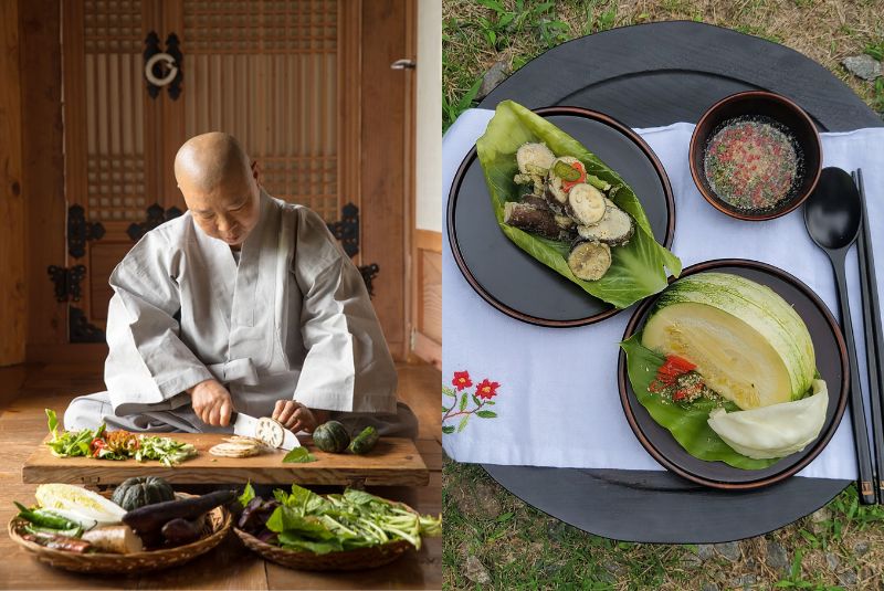 The third principle is seasonality. Monks cook only with products that nature provides at a given time of year. In spring, it’s young bamboo shoots and bitter herbs, in summer — fresh vegetables and greens, in autumn — root vegetables and mushrooms, in winter — pickles and dried products.