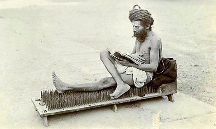 Практика стояння на гострих предметах бере свій початок у древній Індії, де вона була відома як один із методів аскези або “тапасья”. Садху – святі мудреці, які відмовилися від мирського життя в пошуках вищої істини, використовували цю техніку для дисциплінування розуму і тіла. Вони хотіли подолати страхи, біль та прив’язаність до тілесних задоволень, щоб досягти стану повної ясності розуму та глибокої зосередженості.
