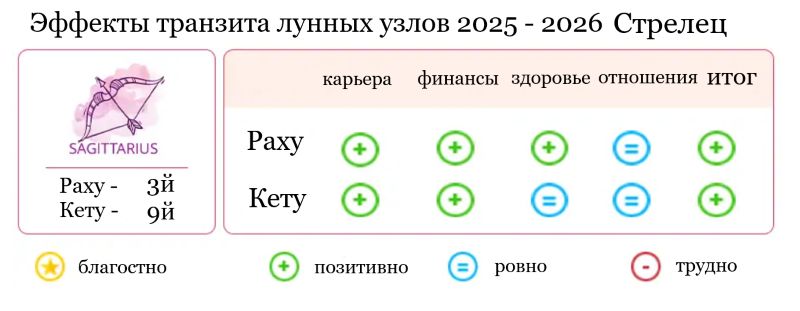 Стрільцям важливо пам’ятати, що стегна та печінка — ваші вразливі зони, і саме вони першими реагують на дисбаланс у роботі з кармічними вузлами. Надмірні амбіції Раху можуть призвести до перенапруження нервової системи та проблем з печінкою, тоді як духовні кризи під впливом Кету можуть впливати на рухливість та гнучкість.
